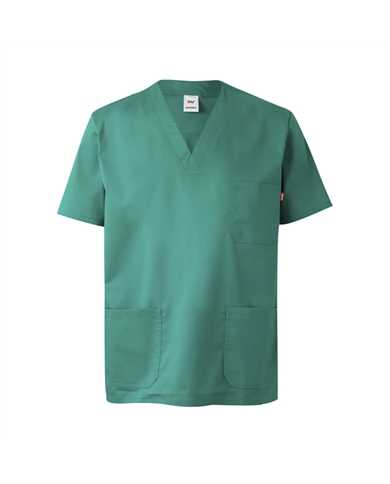 Túnica Stretch possui uma gola em V e inclui também bolsos no peito e parte inferior ao nível da costura para armazenamento. Ideal para a área da saúde.