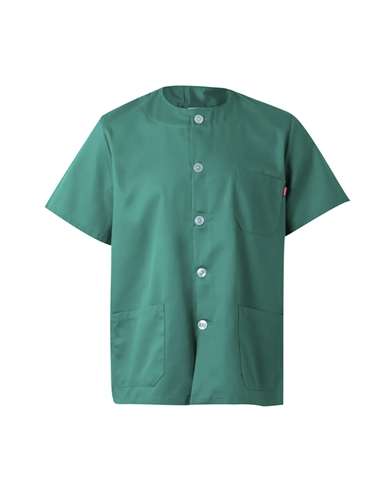 Túnica Botões de manga curta e com gola redonda é adequada para a área de saúde e serviços. Esta túnica possui três bolsos de chapa para armazenamento.