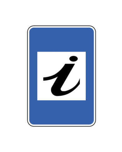 Sinal H22 - Posto de Informações: este sinal dá a Indicação da existência de um posto de informações naquele local em específico. Sinal de Informação. Material: Ferro.